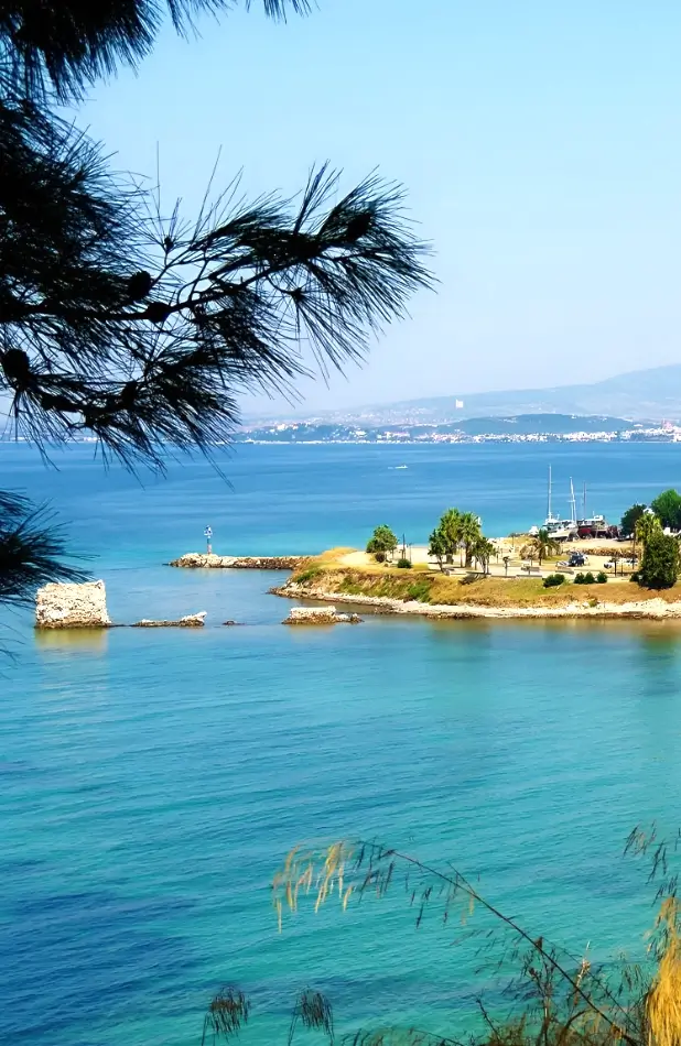 Στις όχθες της, πυκνή βλάστηση από πεύκα που φτάνουν μέχρι τη θάλασσα, κατά μήκος της, αρχαία και βυζαντινά ερείπια των τειχών της παλιάς πόλης και στα δύο λιμανάκια της αγκυροβολημένα σκάφη και ψαροκάικα, συνθέτουν το τοπίο.